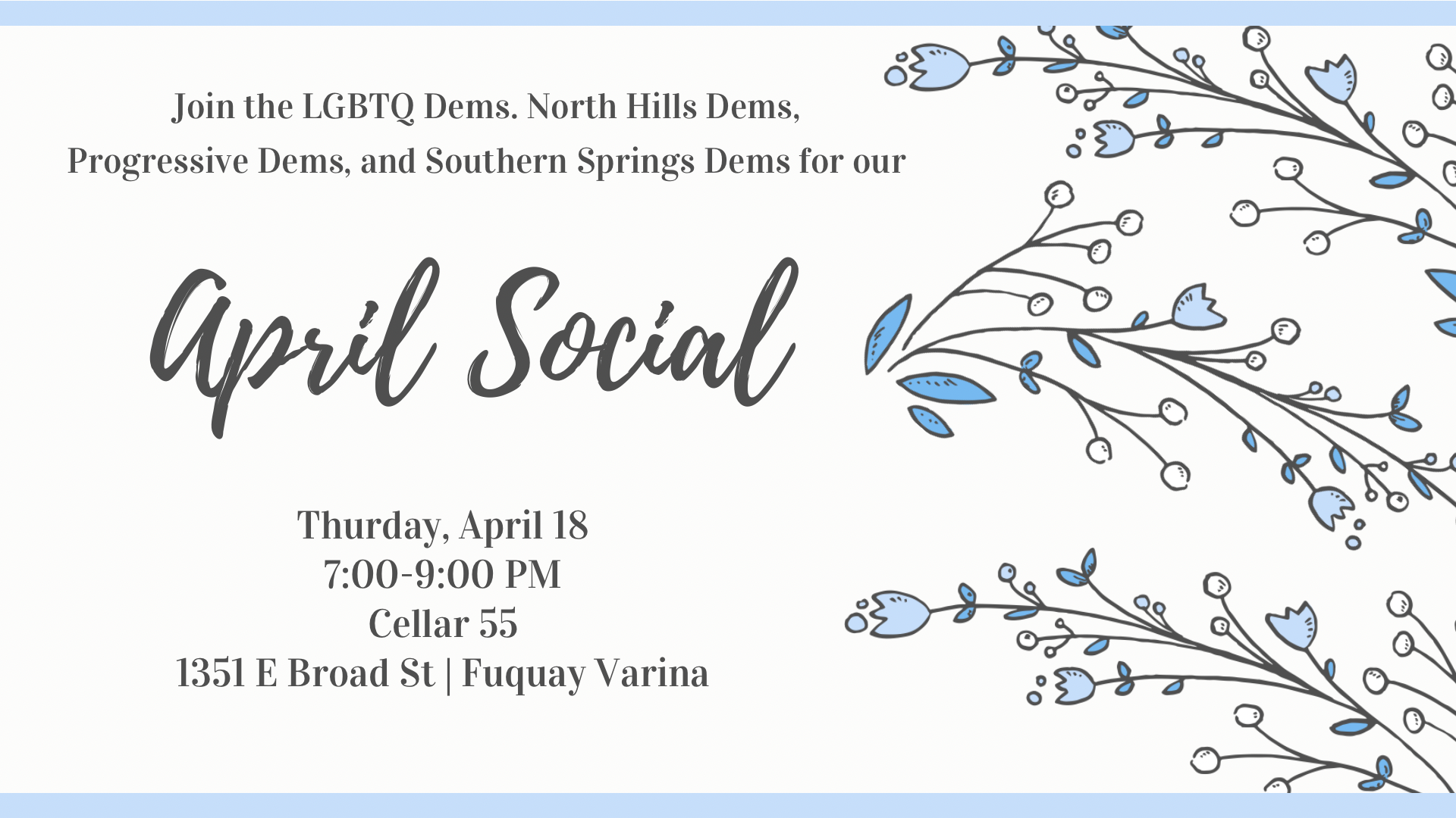 Joint SOCIAL EVENT with LGBTQ Dems, North Hills Dems, and the Progressive Dems! |