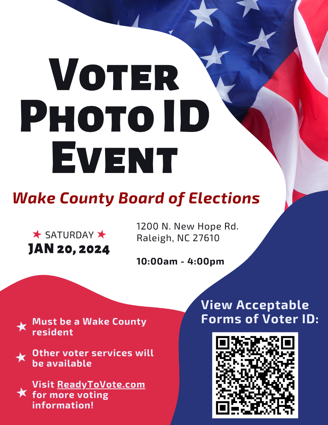Join the Wake Co. Board of Elections for a special event where you can get your free Photo ID and learn more about voting in Wake County.